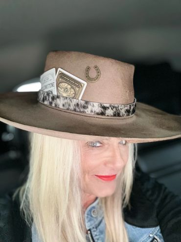 Custom wool hat with alligator band and JD cards - Cost is 205 + 25.00 leather = $230.00